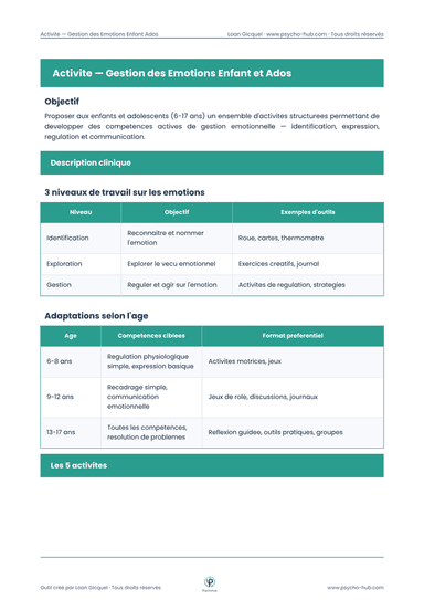 Activités de Gestion des Émotions — Enfant et Adolescents