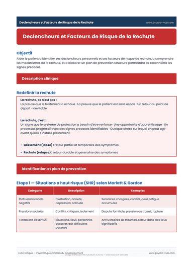 Déclencheurs et Prévention de la Rechute — Plan Personnalisé