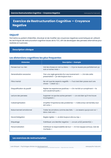 Exercice de Restructuration Cognitive — Croyance Négative