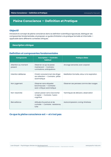 Introduire le concept de pleine conscience dans sa définition scientifique rigoureuse, distinguer ses composantes fondamentales, et proposer un guide d'initiation à la pratique formelle et informelle.