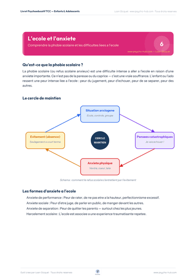 Comprendre les mécanismes du refus scolaire anxieux, identifier ses différentes formes d'anxiété liées à l'école, et engager le travail d'exposition progressive pour un retour progressif en milieu scolaire.