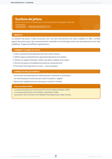 Motiver l'enfant par un système de monnaie symbolique échangeable contre des récompenses, en utilisant l'intervention comportementale la mieux validée en ABA pour encourager les comportements souhaités.