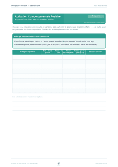 Activation Comportementale Positive — Augmenter les Activités Sources d'Émotions Positives