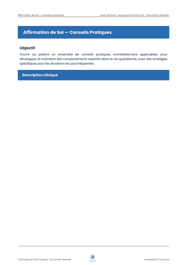 Ensemble de conseils pratiques et de phrases-types assertives immédiatement applicables pour développer et maintenir des comportements assertifs dans la vie quotidienne, avec stratégies spécifiques pour les situations les plus fréquentes.