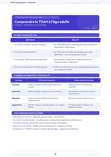 Comprendre le TDAH à l'Âge Adulte — Fiche Psychoéducative Patient