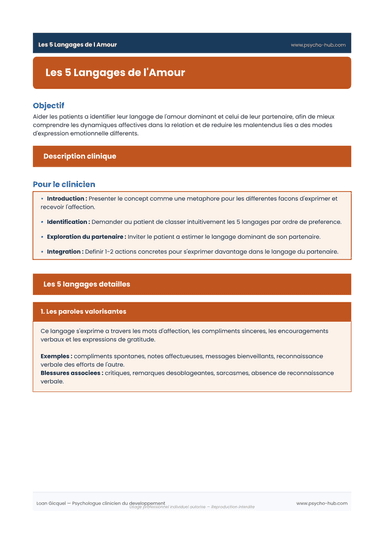 Les 5 Langages de l'Amour — Fiche clinique