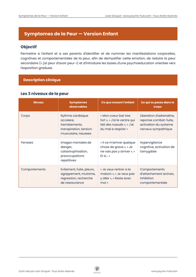 Symptômes de la Peur — Psychoéducation Version Enfant